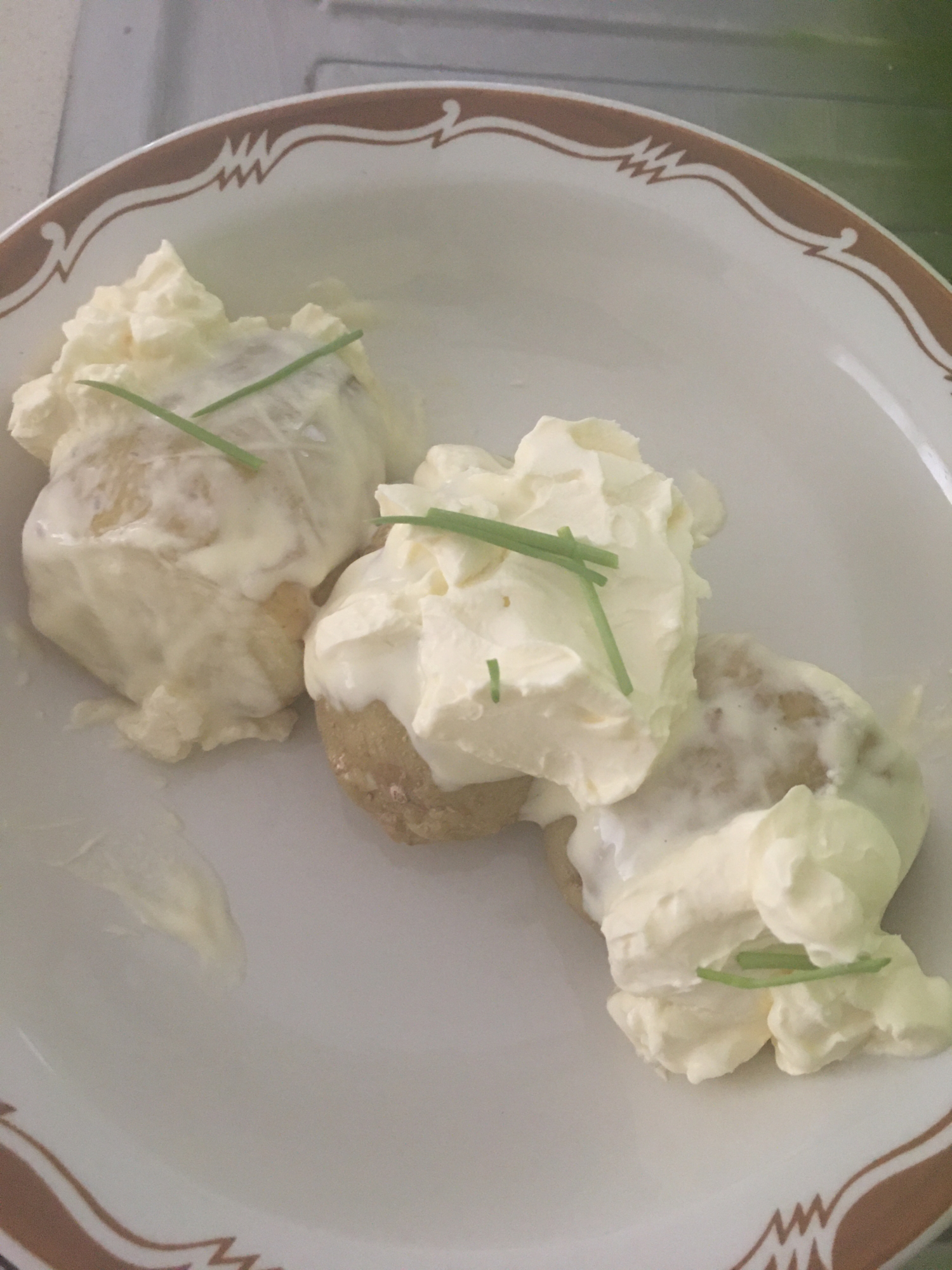 スウェーデン風ベイクドポテト サワークリームとオニオンのソースでいただきました ベイクドポテト サワークリーム オニオン